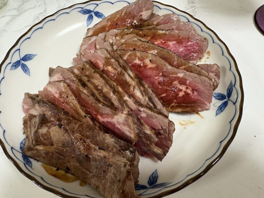 牛肉を室温に戻す(2~3時間程度)。塩・こしょう・にんにくを全体にすり込み、オリーブオイルを塗る。